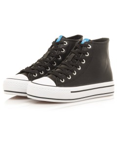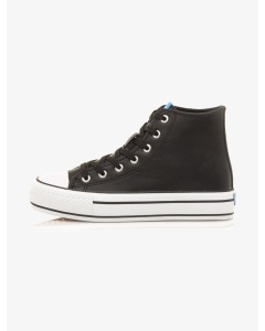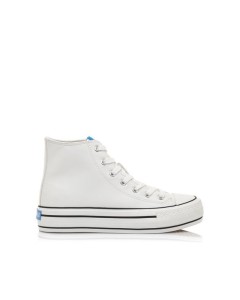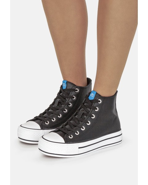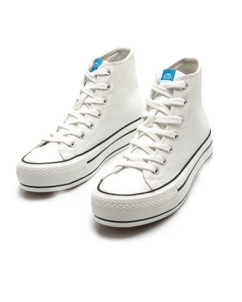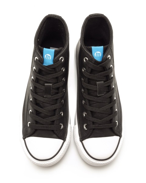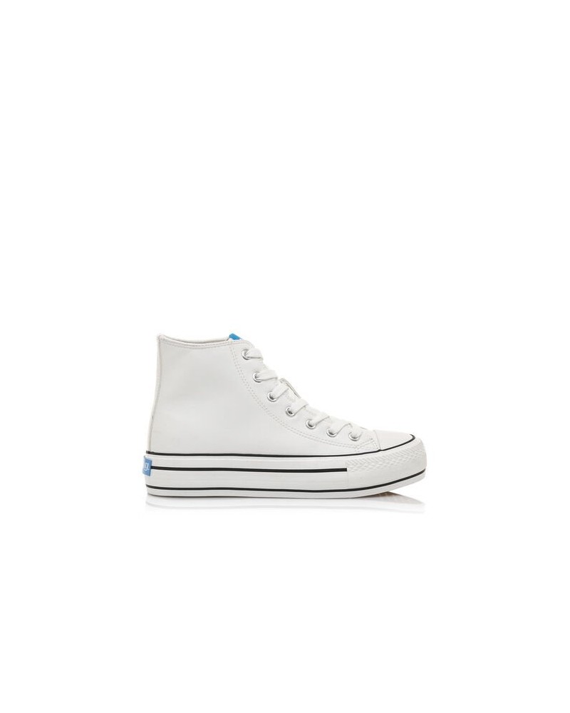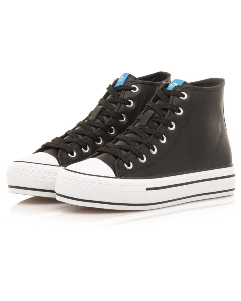 Deportiva abotinada Mustang en color blanca o negro diseñada en piel sintética con suela gruesa y puntera de goma con detalle del perfilado en negro, tiene cierre con cordones blancos. No te quedes sin tus básicos de temporada
