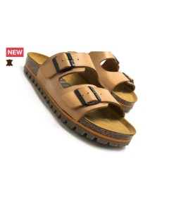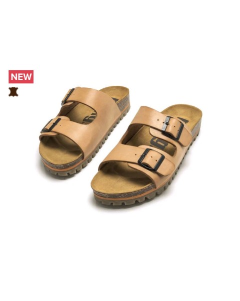 Sandalia de chico con diseño de estilo bio en color cuero con doble tira en la pala y detalle de hebillas, fabricadas en pieles de gran calidad y piso de goma. Confortables para tu día a día, un básico Mustang que no puedes dejar pasar. Fabricadas en España.